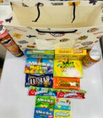 Indulge in a selection of sweet and savory treats with our £25.99 Mix Bag. Savor the taste of chewy gummy candies and rich chocolate bars, then wash it all down with a refreshing can of soda in a unique flavour. And if you’re feeling a little snacky, grab a bag of crisp and crunchy chips that will satisfy your cravings. With such a diverse array of treats, there’s something for everyone in our Mix Bag.