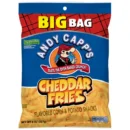 Andy Capp's Cheddar Fries, in a big bag, brought to you all the way from the US. Why settle for one main ingredient in your snacks? Enjoy the bountiful fruits of the new world with these delicious corn AND potato french fries liberally coated in cheddar flavour.