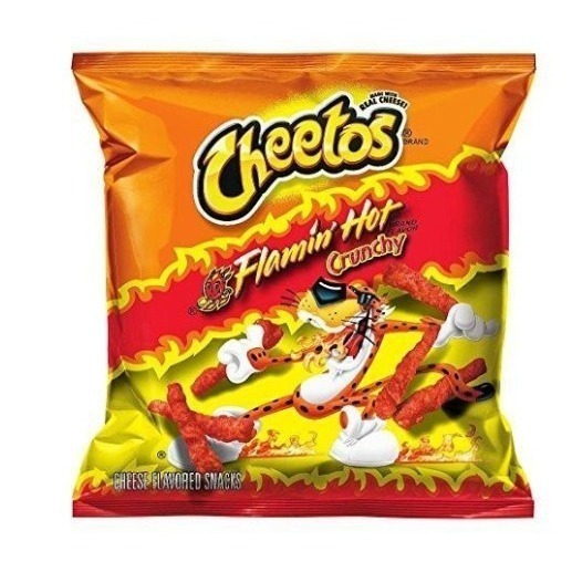 Enriched Corn Meal (Corn Meal, Ferrous Sulfate, Niacin, Thiamin Mononitrate, Riboflavin, And Folic Acid), Vegetable Oil (Corn, Canola, and/or Sunflower Oil), Flamin’ Hot Seasoning (Maltodextrin Made from Corn , Salt, Sugar, Monosodium Glutamate, Yeast Extract, Citric Acid, Artificial Color Red 40 Lake, Yellow 6 Lake, Yellow 6, Yellow 5 , Sunflower Oil, Cheddar Cheese Milk, Cheese Cultures, Salt, Enzymes , Onion Powder, Whey, Whey Protein Concentrate, Garlic Powder, Natural Flavor, Buttermilk, Sodium Diacetate, Disodium Inosinate, Disodium Guanylate), and Salt.