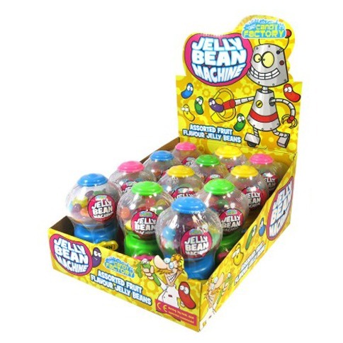 Jelly Bean Machines are a popular novelty sweet, each jelly bean machine contains a selection of jelly bean that must be released before eaten.