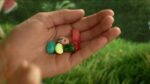 Sugar, glucose syrup, modified cornstarch, fruit and vegetable concentrates (apple, pumpkin, carrot, spirulina, black currant, hibiscus), banana puree, flavourings, acidity regulator (E330), cocoa powder, colours (E171, E150a, E100), glazing agents (E904, E901, E903), lemon puree, salt, tapioca dextrin.
