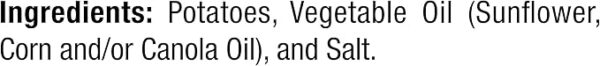 Potatoes, Vegetable Oil (Sunflower, Corn, and/or Canola Oil), and Salt.