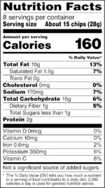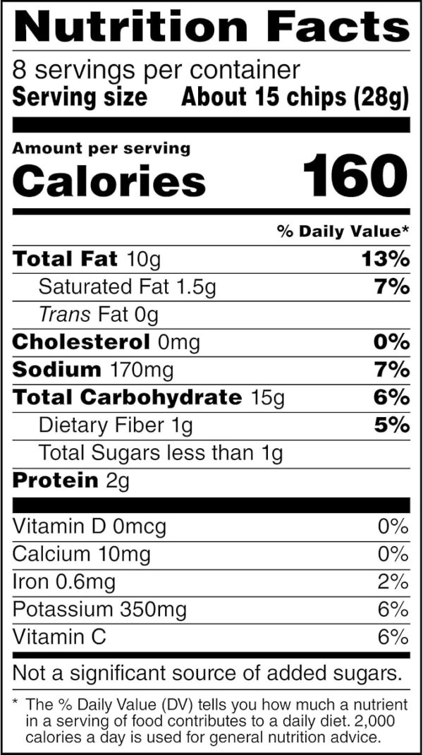 Nutritional Information (per serving - 1oz/about 15 chips):