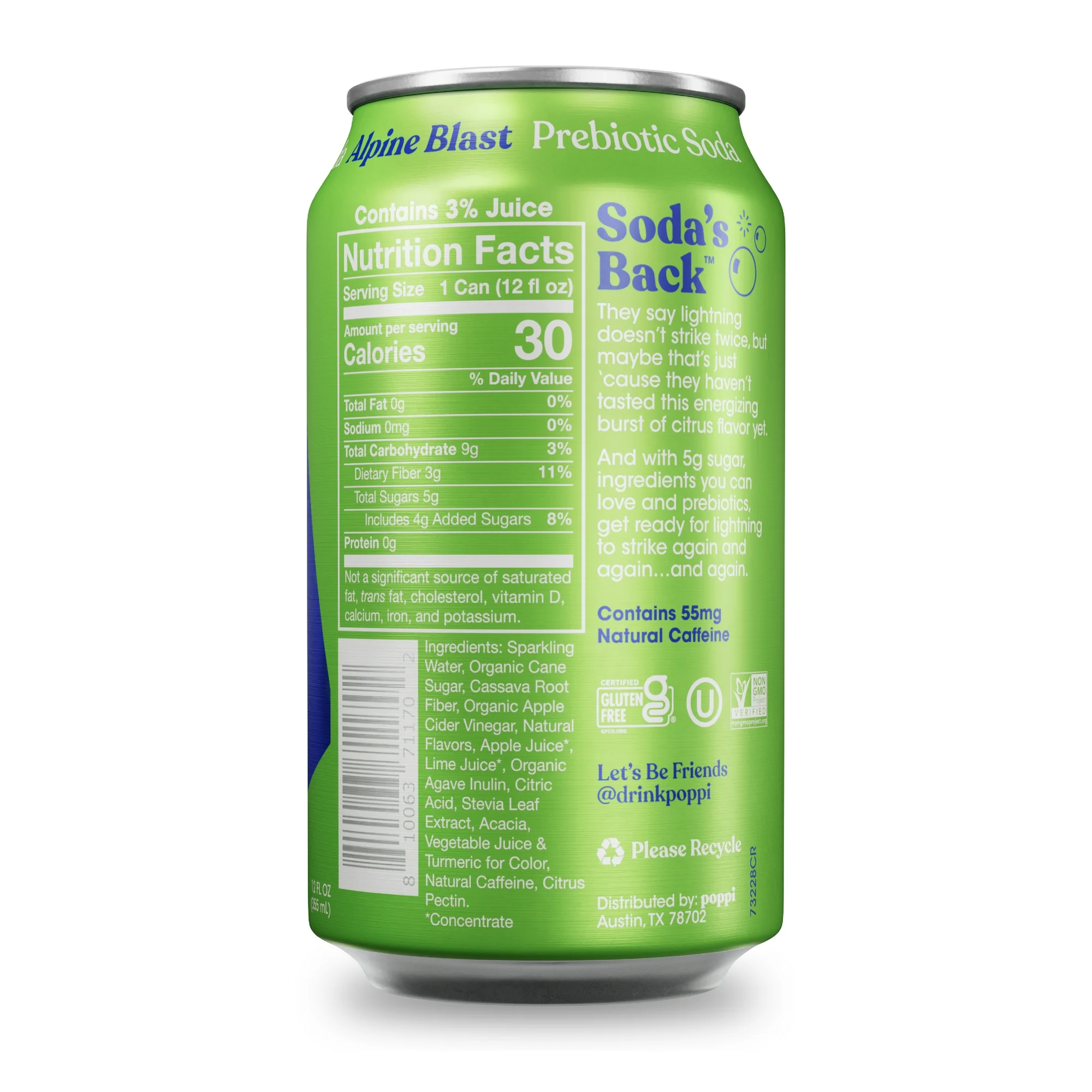 Perfect for a refreshing pick-me-up, Poppi Alpine Blast delivers that energising citrus kick you love with a lighter, healthier twist in every sip.