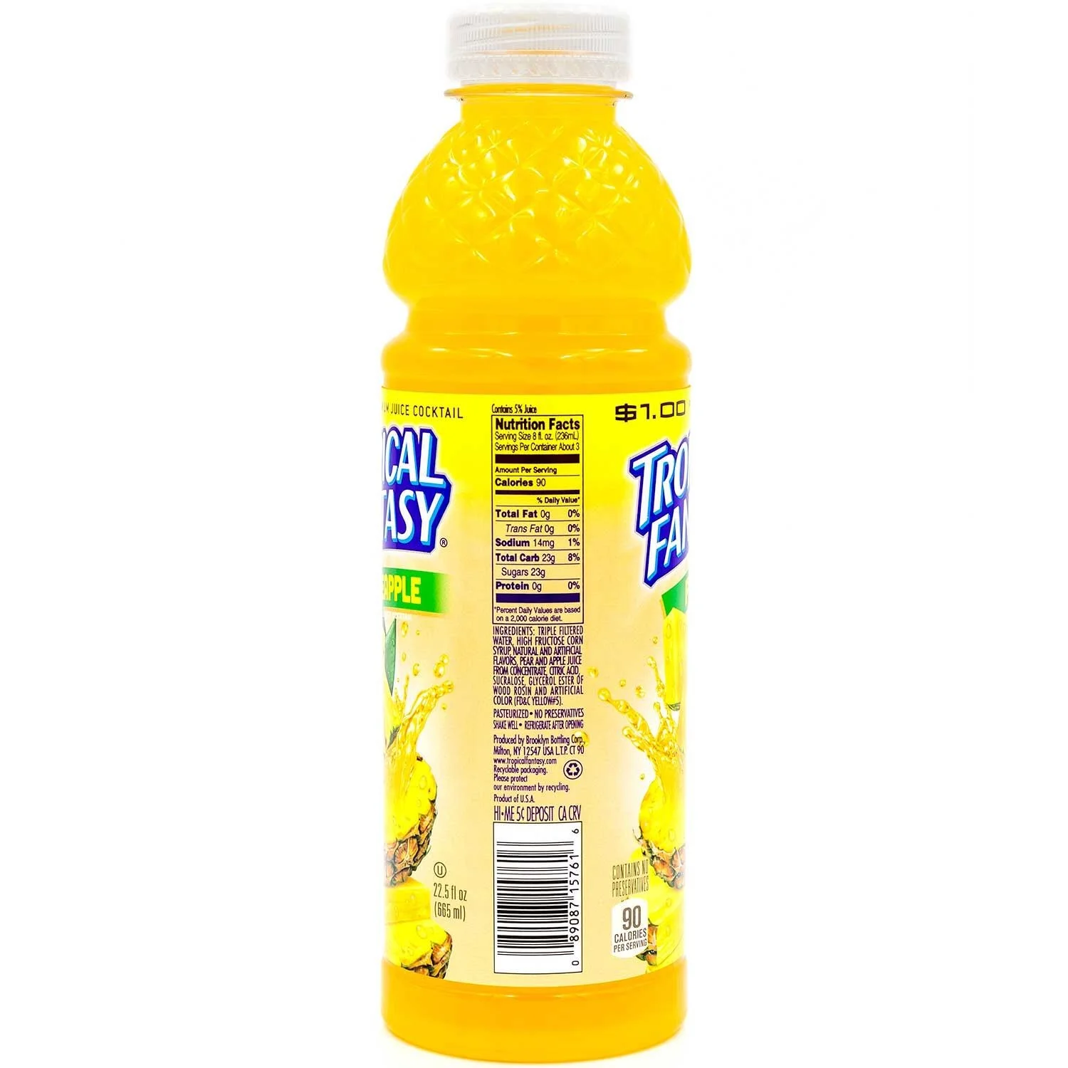 Tropical Fantasy Pina Colada Juice Cocktail, 23.5oz. Tropical Fantasy Pina Colada Premium Juice. 50 calories per serving Pasteurized No preservatives Kosher. Tropical Fantasy Pina Colada. Make refreshing beverages at home or on the go with this delicious blended juice from Tropical Fantasy. Get your taste buds tingling with Tropical Fantasy Pina Colada Juice. The Tropical Fantasy Pina Colada Juice is made from a 3% juice blend. It’s the perfect solution for a quick pick-me-up when you’re on the go! Shelf-Stable