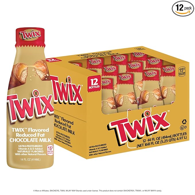 Introducing America’s favorite chocolate bar brands as flavor-rich reduced fat chocolate milks. TWIX Chocolate Milk is a combination of crunchy cookie, delicious caramel and creamy chocolate. Savor this drinkable treat.